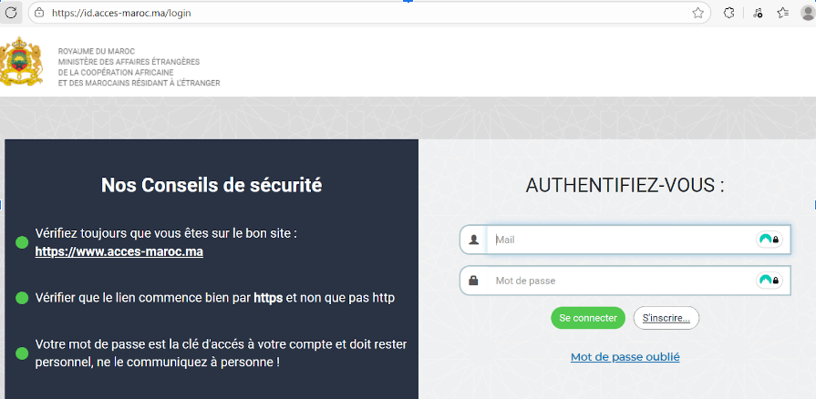 La demande d’AEVM se fait exclusivement en ligne via le portail officiel du Maroc, accessible à l’adresse www.acces-maroc.ma. La procédure est simple et s’effectue en plusieurs étapes :