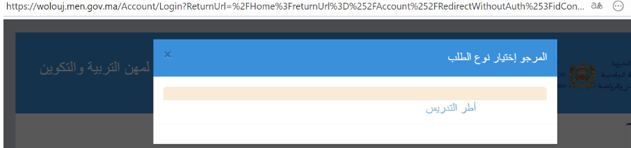 - Accédez au site officiel : https://wolouj.men.gov.ma et cliquez sur « طلب جديد » (nouvelle demande)
